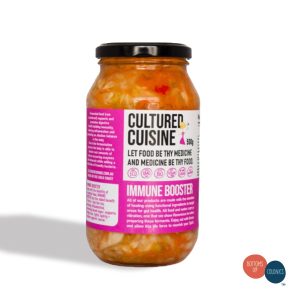 **Kraut Jar (RRP $15)** Fermented food (raw sauerkraut) supports and promotes digestive health building immunity, reducing inflammation and promoting an alkaline balance in the body. Due to the fermentation process, the body is able to absorb vast amounts of natural occurring enzymes and minerals while adding a multitude of friendly bacteria.