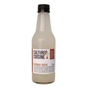 **Kefir Bottle (RRP $9)** made from organic coconut water and a kefir starter, is rich in vitamins B12, K2, and minerals. This probiotic beverage offers numerous benefits including enhancing digestion, boosting immunity, and supporting detoxification, promoting a balanced mood, and aiding hormone balance while fighting allergies and candida.